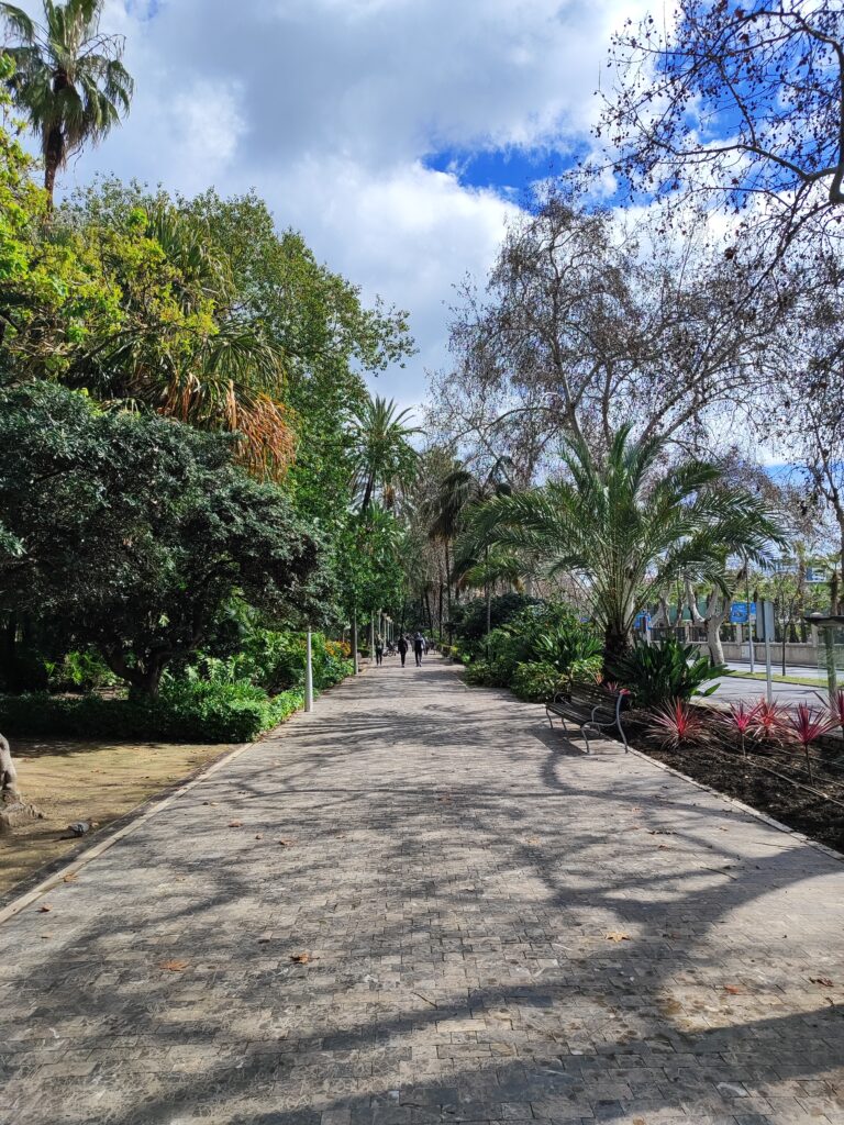 Park w Maladze to zielony pas rozciągający się wzdłuż portu, stanowiący przyjemny kontrast dla zabudowy miejskiej. Gęsta roślinność, egzotyczne drzewa, palmy i fontanny tworzą tu spokojną atmosferę sprzyjającą odpoczynkowi. Park jest idealnym miejscem na krótki spacer, przerwę w zwiedzaniu lub chwilę relaksu na ławce. To także dobra okazja, by schronić się przed słońcem lub po prostu zwolnić tempo i nacieszyć się otoczeniem.