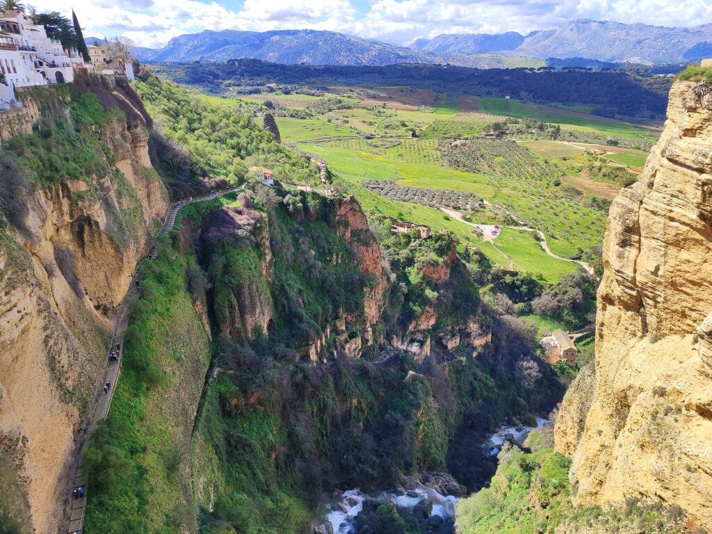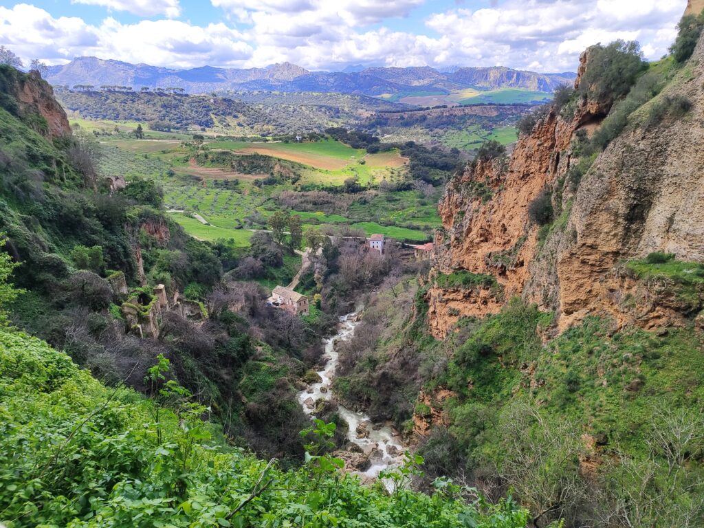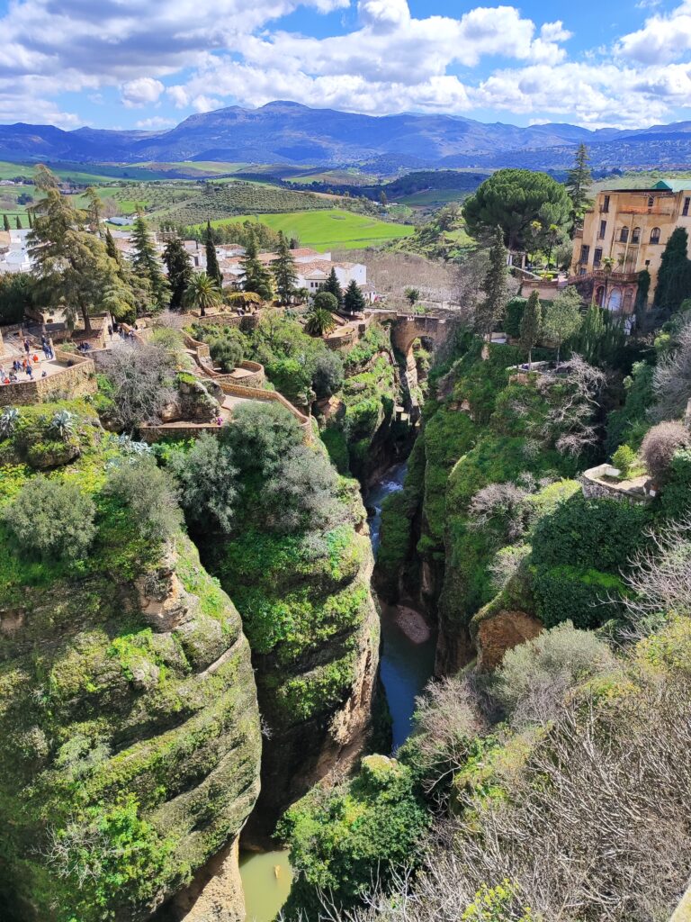 Ronda to jedno z najbardziej malowniczych miasteczek Andaluzji, położone spektakularnie na skalnym płaskowyżu, przeciętym głębokim wąwozem El Tajo. To właśnie on dzieli miasto na dwie części, połączone słynnym mostem Puente Nuevo, który stał się symbolem Rondy i jednym z najczęściej fotografowanych miejsc w regionie. Widok z mostu zapiera dech w piersiach i najlepiej oddaje surowe, naturalne piękno okolicy.